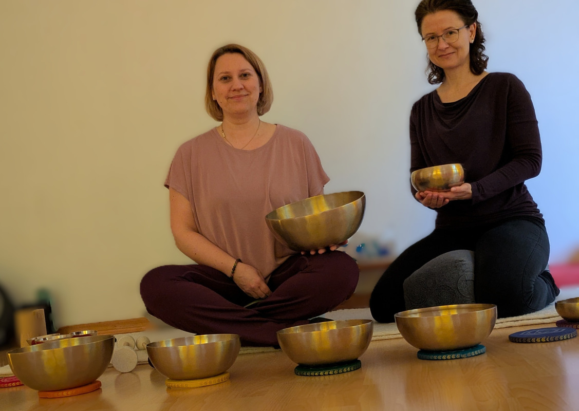 Nadine begleitet dich durch die sanften Yin‑Yoga‑Haltungen, während ich mit Klangschalen die Entspannung vertiefe und die Klänge dich in die Tiefe tragen.